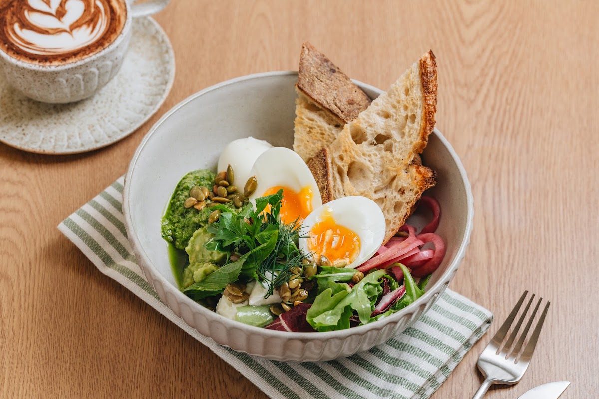 The most dog friendly cafe iv visited in a long time because dogs can be inside or outside in the stunning courtyard. Even in winter months it’s lovely to sit in the courtyard because there’s a lot of sun the entire time they are open. Bacon and egg bagel is great and I love AM breaky bowl with bacon. It’s not clear that if you choose to sit in the courtyard that you will get served in takeaway cartons but that is fine with me but if you are expecting plated service and silver cutlery then you need to sit on the tables directly infront of the entry or inside.